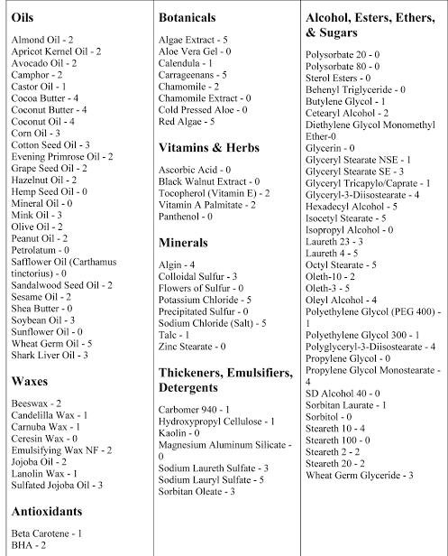 💯 Comedogenic rating คือ การจัดอันดับสารว่าทำให้เกิดการอุดตันและก่อให้เกิดสิวมากหรือน้อยแค่ไหน โดยแบ่งเป็น คะแนน 0-5 (ตัวเลขอาจบวกลบได้เล็กน้อยขึ้นกับงานวิจัย แต่จะอยู่ประมาณค่าตามตาราง)