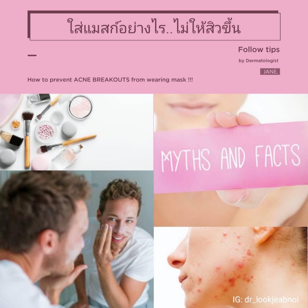 - สิวอุดตัน จากการเสียดสีของแมสก์กับผิว ทำให้รูขุมขนอุดตัน เราเรียกว่า acne mechanica