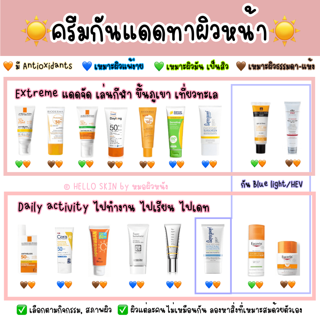 2) กลุ่มครีมกันแดดที่ป้องกัน Blue light อาจไม่จำเป็นสำหรับทุกคน แนะนำในคนที่ต้องนั่งทำงานหน้าจอคอมพิวเตอร์หรือเล่นโทรศัพท์มือถือบ่อย ๆ