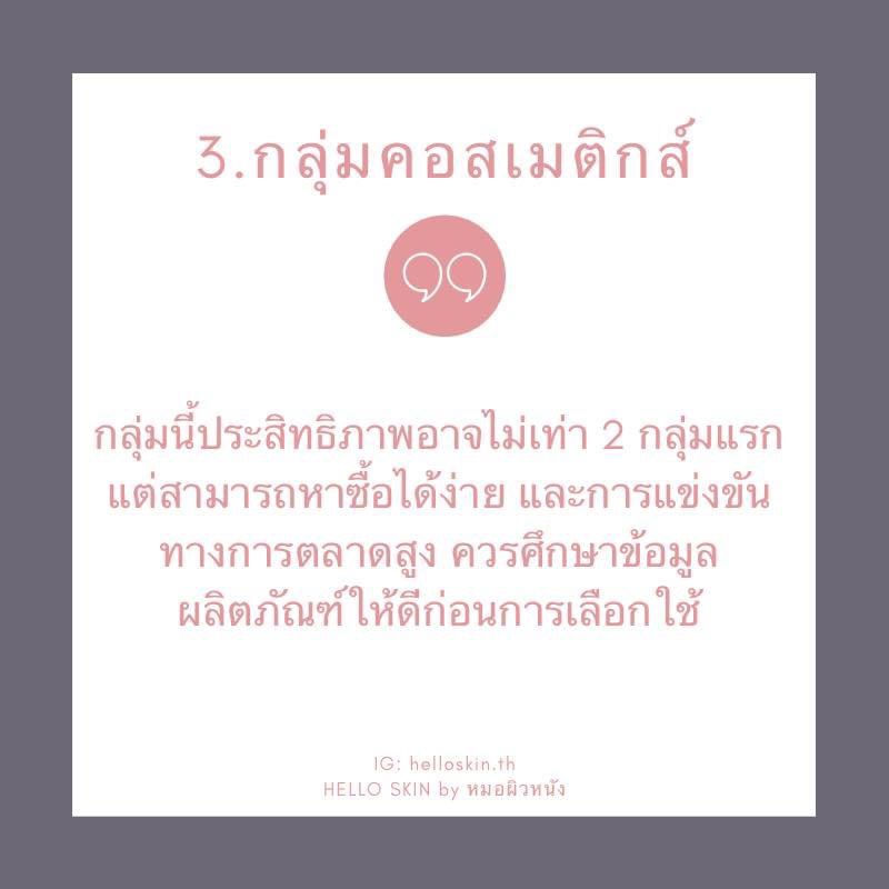 ส่วนการพิจารณาเลือกคงเป็นเรื่องของตัวบุคคล และขึ้นกับปัญหาผิวที่ต้องการแก้ไข เพราะปัญหาบางอย่างอาจต้องใช้ยาที่สั่งการรักษาด้วยแพทย์ บางอย่างสามารถใช้คอสเมติกส์ตามท้องตลาดก็เห็นผลได้ค่ะ