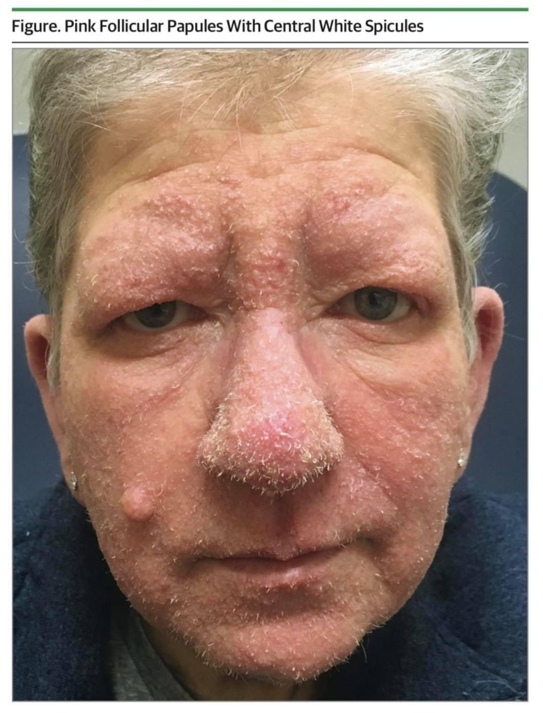 ตุ่มเล็ก ๆ ที่หน้าในผู้ป่วยที่ได้รับการปลูกถ่ายไต ดังรูป เรียกว่า Trichodysplasia Spinulosa ‼️