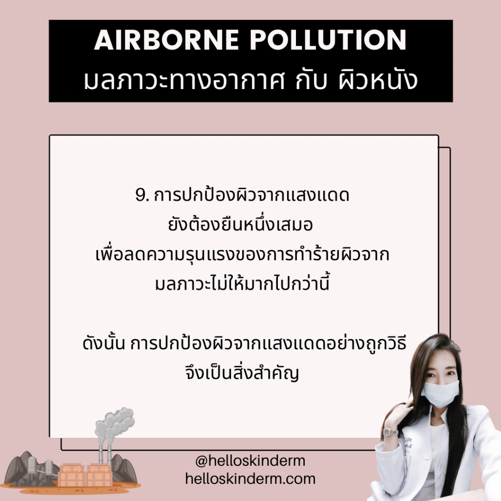 วันนี้หมอจะเน้น 9 ข้อสั้น ๆ ให้เห็นถึงความสำคัญของการปกป้องผิวจาก มลภาวะทางอากาศ เพิ่มเติมจากการป้องกันแดดค่ะ เพราะเชื่อว่าทุกคนที่ติดตามเพจอยู่ คงรู้หมดแล้วว่ากันแดดสำคัญขนาดไหน