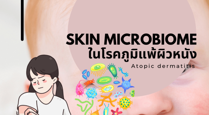 สาเหตุของการเกิดโรคผื่นภูมิแพ้ผิวหนังยังไม่ทราบแน่ชัด มีข้อมูลเชื่อว่าการเสียสมดุลของไมโครไบโอมผิวอาจเป็นหนึ่งในปัจจัยกระตุ้นการกำเริบของผื่นได้ เพราะการศึกษาพบว่าไมโครไบโอมที่ผิวคนเป็นภูมิแพ้ผิวหนังมีความแตกต่างเมื่อเทียบกับคนปกติ (ดังรูป)