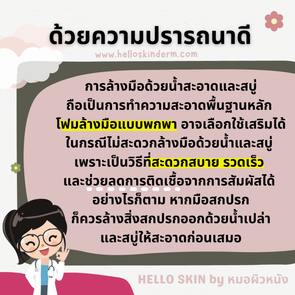 แต่อย่างไรก็ตาม หากมือสกปรกก็ควรล้างสิ่งสกปรกออกด้วยน้ำเปล่าและสบู่ให้สะอาดเสมอค่ะ