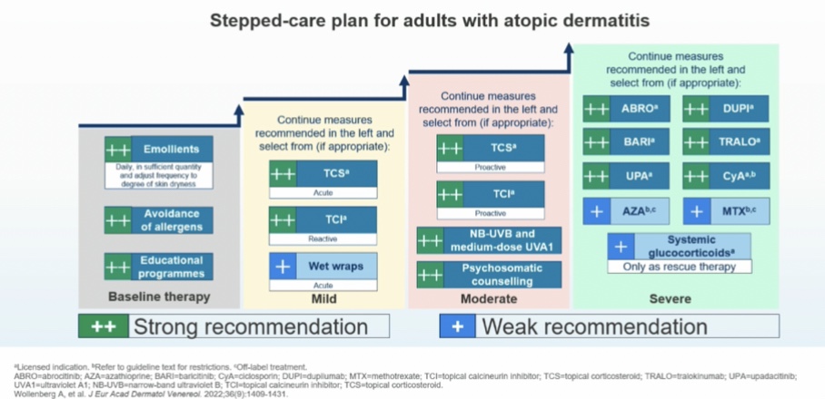 พอผื่นเริ่มดีขึ้นแล้วจะเริ่มลดยาทาสเตอรอย์ โดยอาจเริ่มลดทาสลับกับ topical calcineurin inhibitors และค่อย ๆหยุดในที่สุด