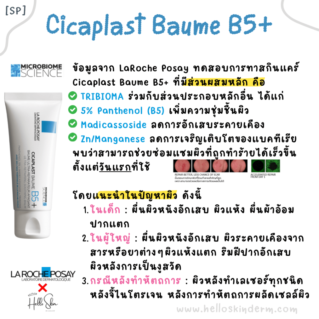 ข้อมูลจาก LaRoche Posay ทดสอบการทาสกินแคร์ที่ประกอบด้วย TRIBIOMA ร่วมกับส่วนประกอบหลักอื่น คือ