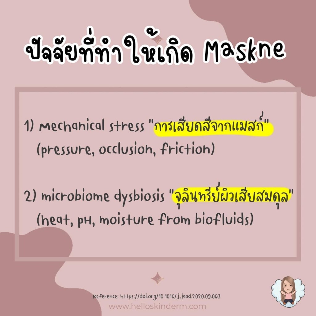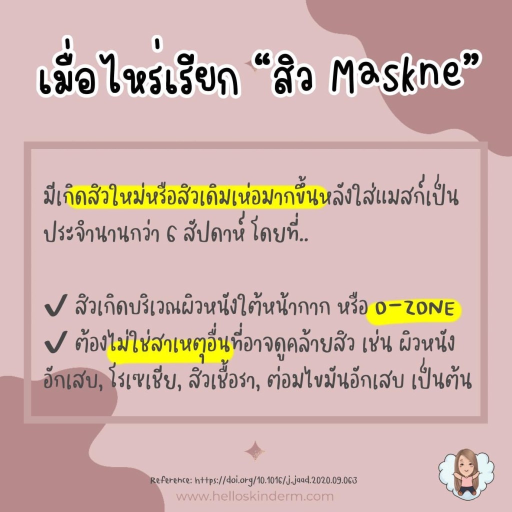 2. สิวจากการใส่แมสก์ อาจเกิดในคนที่กำลังรักษาสิวอยู่ และสิวสงบดี เพราะสภาพแวดล้อมใต้แมสก์เปลี่ยนไปสิวจึงเห่อขึ้นได้ ฉะนั้น อย่าเพิ่งโทษว่าดื้อยาหรือยาไม่ได้ผล แนะนำให้ลองปรับที่การดูแลผิวก่อนเลยอันดับแรก