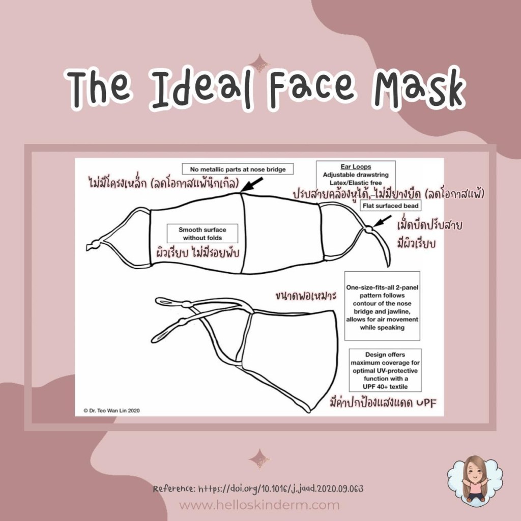 9. Ideal Face Mask ที่ช่วยลดโอกาสการเกิดสิว มีการ propose ไว้ดังรูปค่ะ แต่อย่างไรก็ตาม เราคงต้องคำนึงถึงปัจจัยเรื่องการป้องกันโรคติดต่อร่วมด้วย การเลือก mask เป็นเพียงส่วนหนึ่งในชีวิตประจำวันเท่านั้น